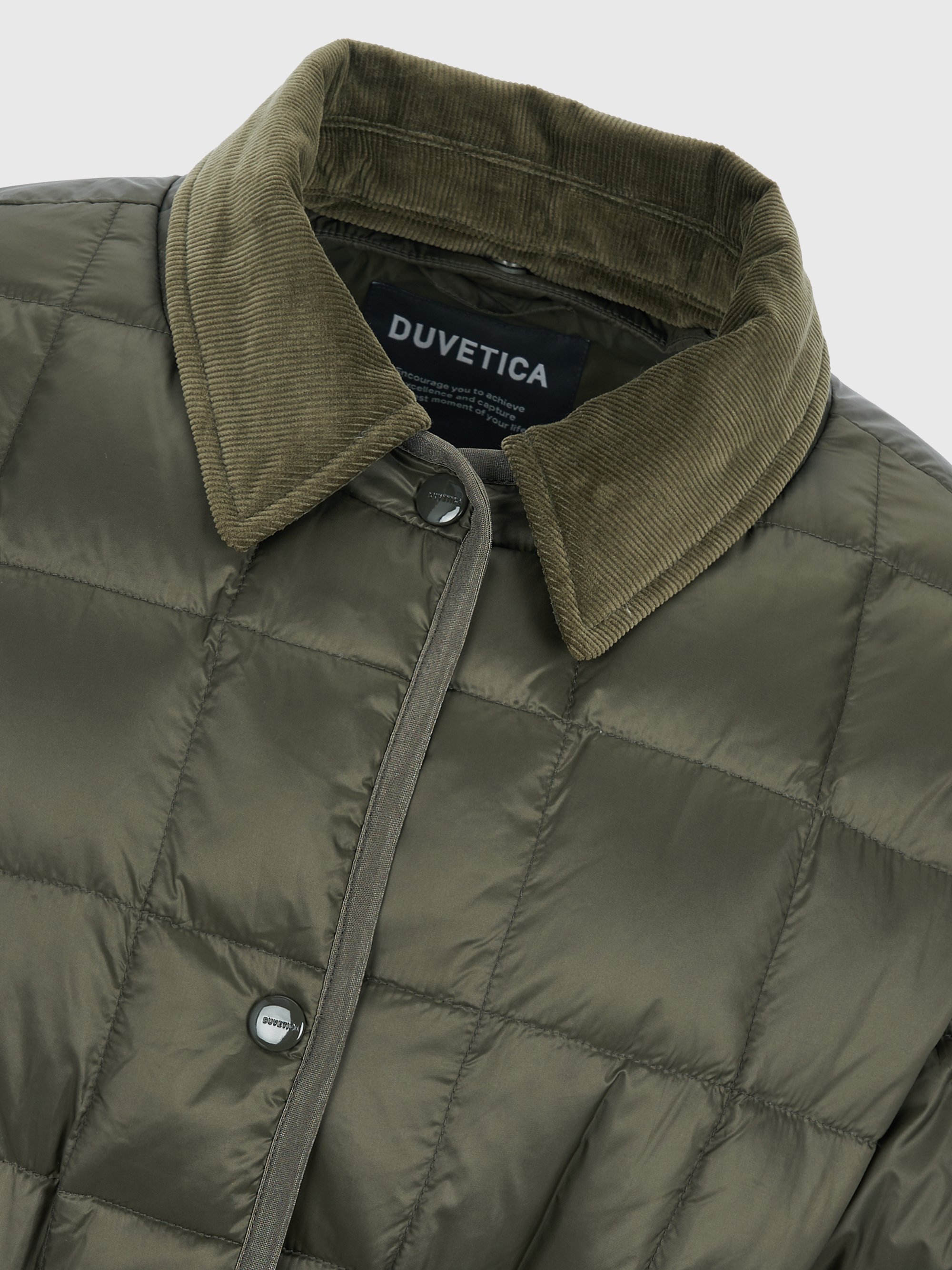- 부드러운 코듀로이 소재의 카라 디테일로 포인트를 더함