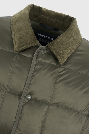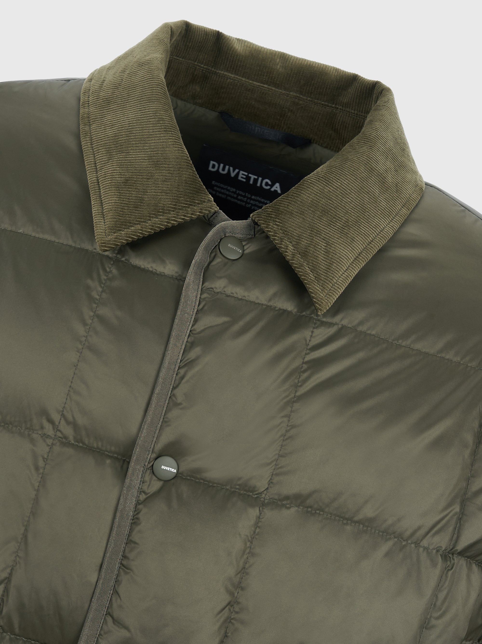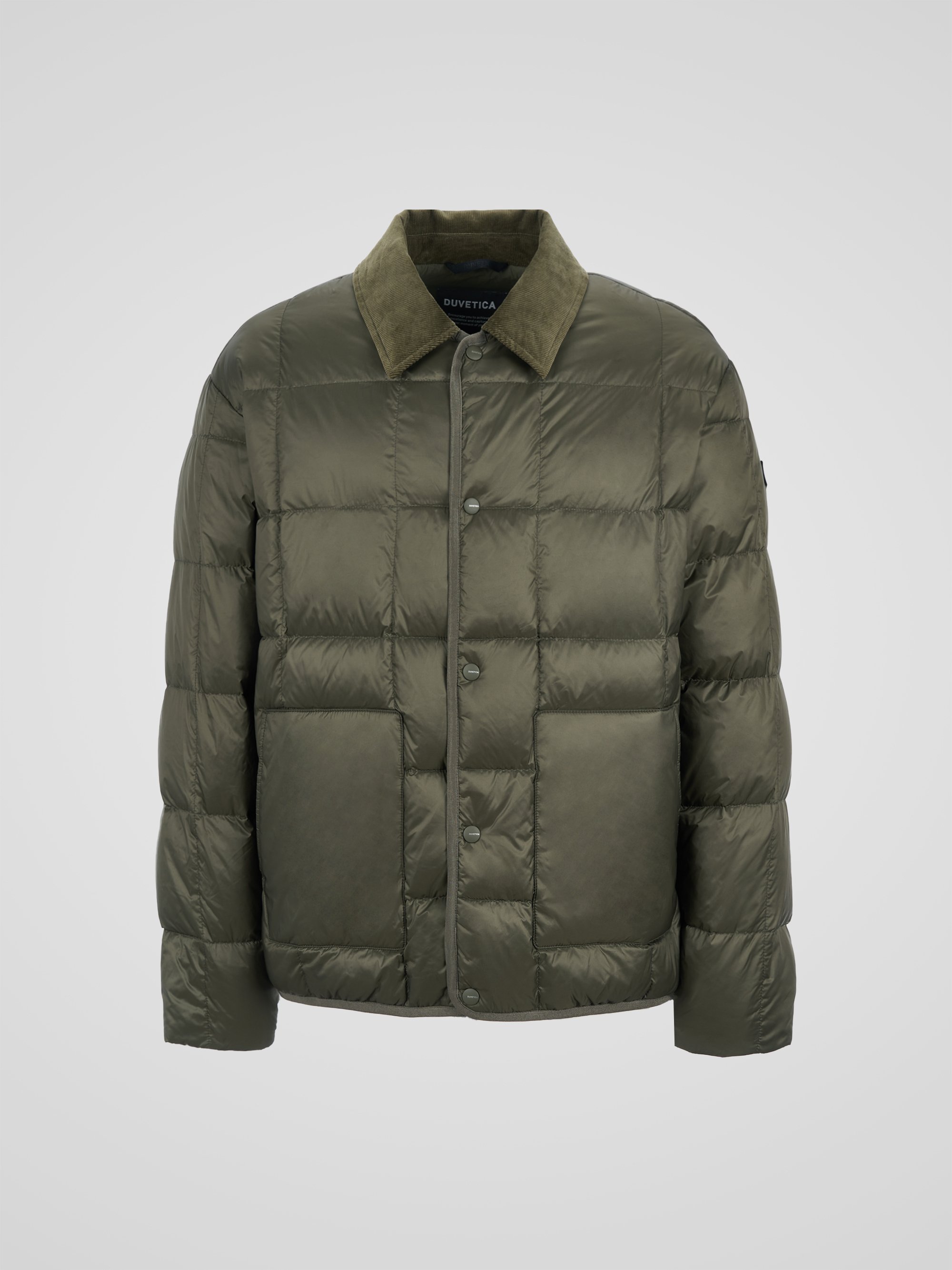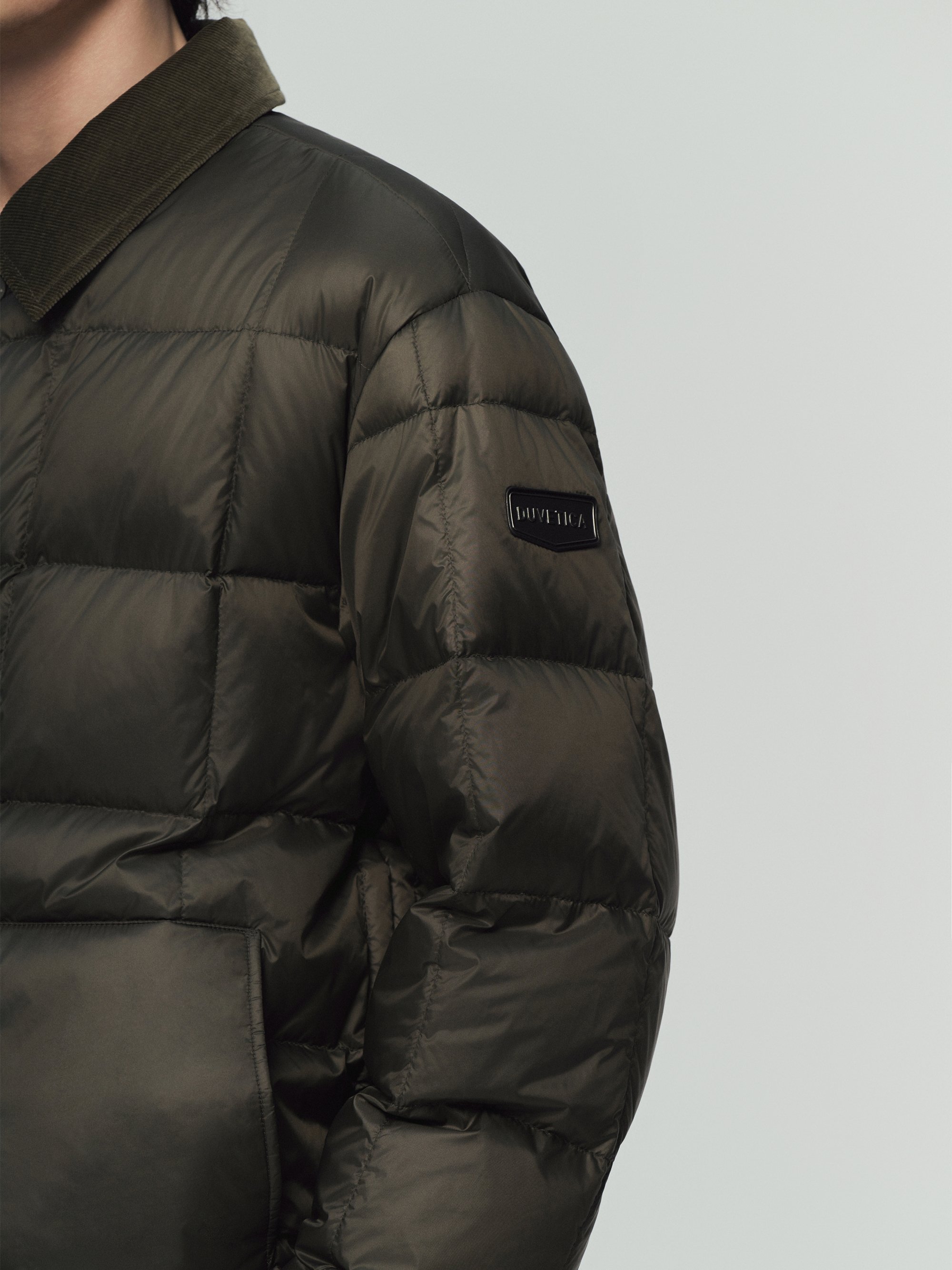 - 매트한 나일론 소재에 사각퀼팅을 적용한 워크자켓형 남성 경량 다운자켓