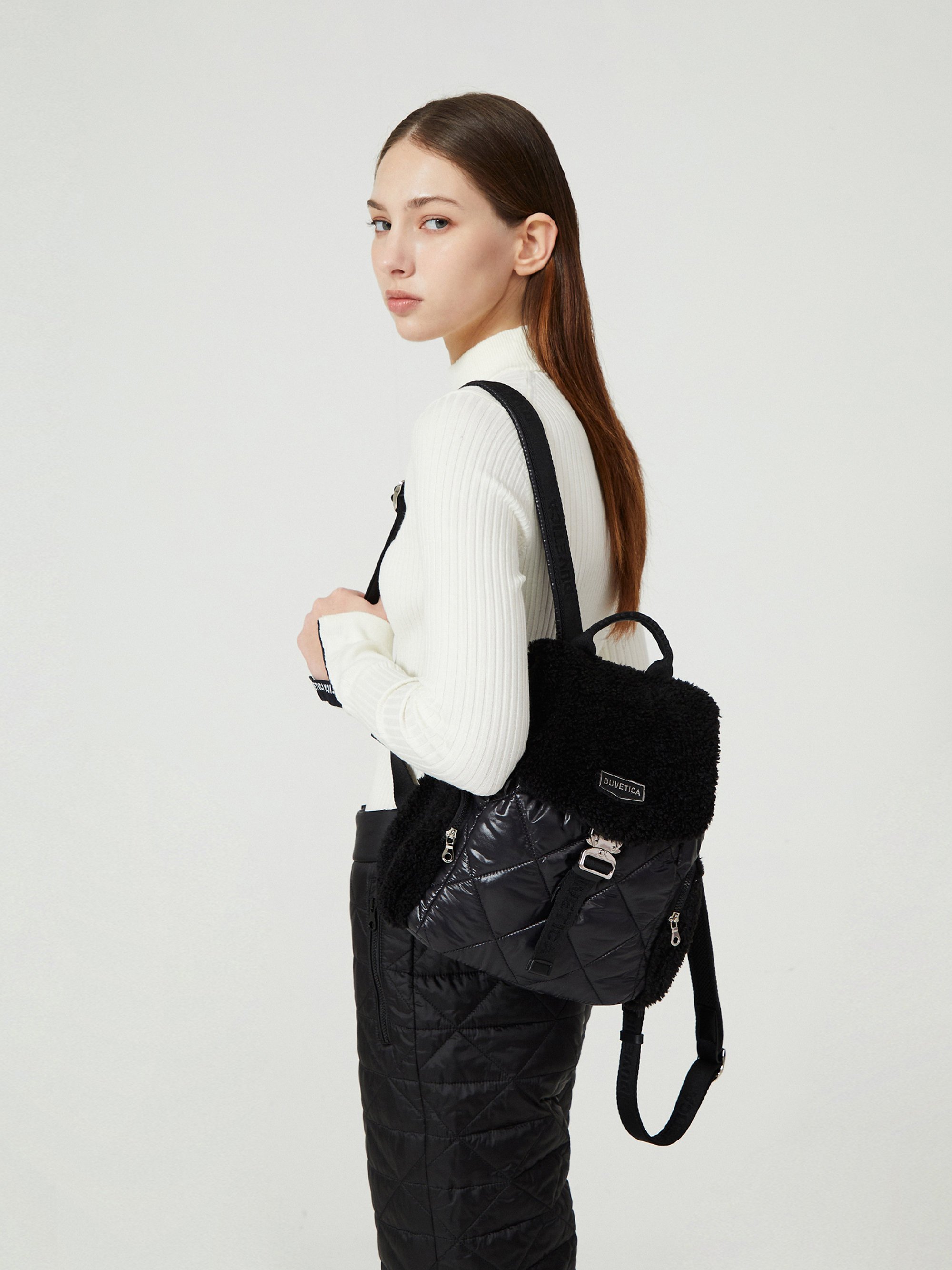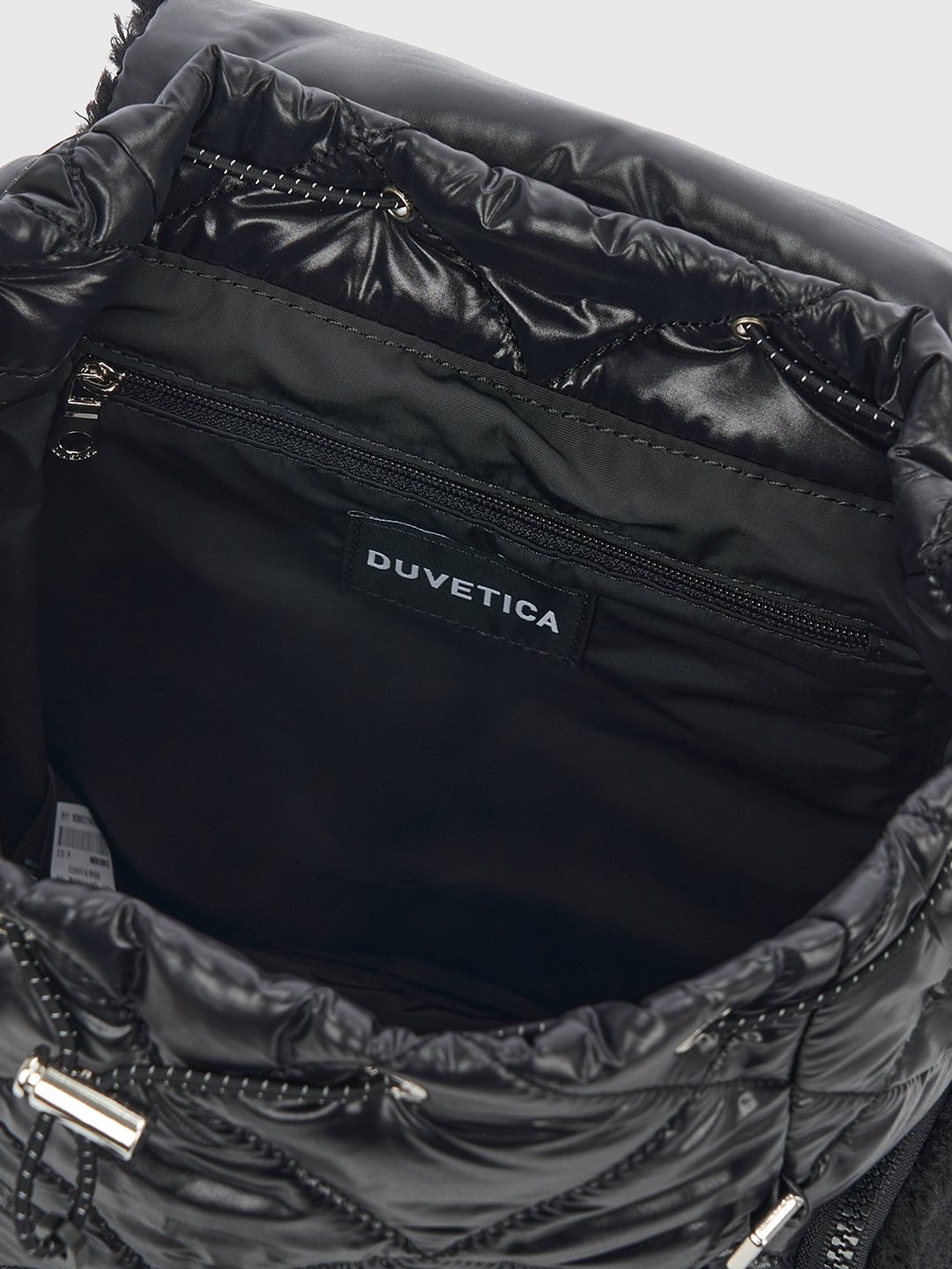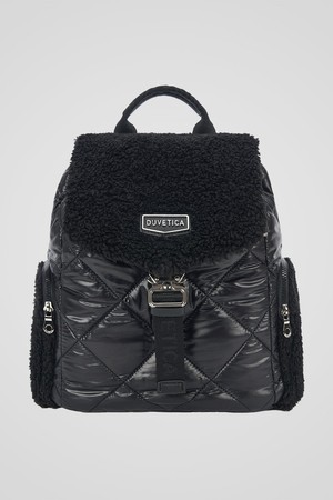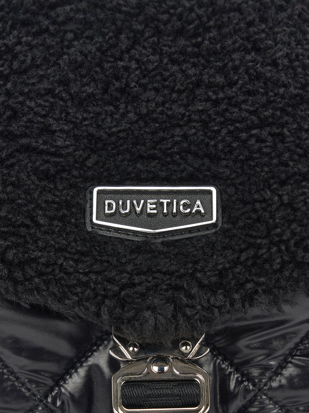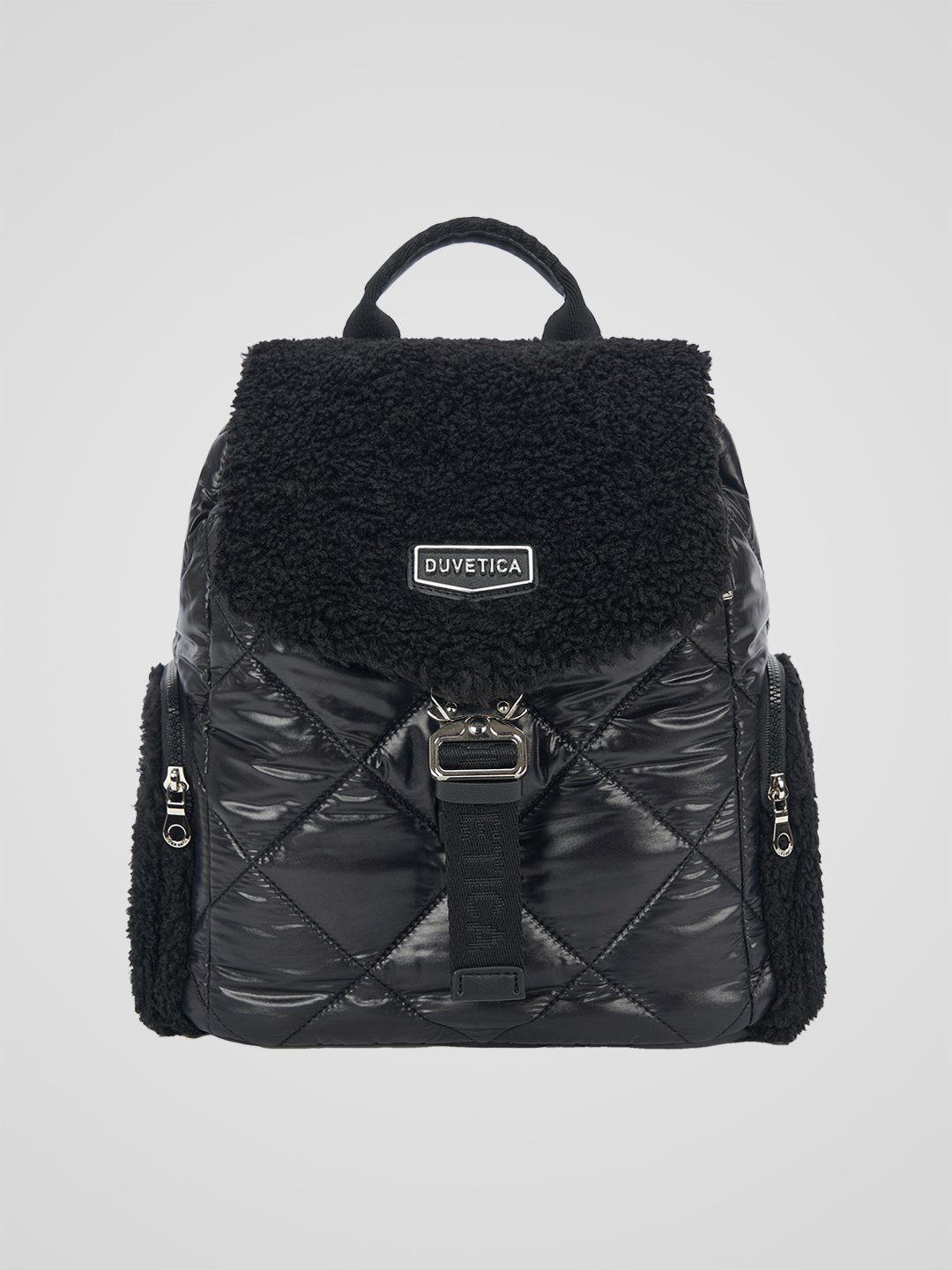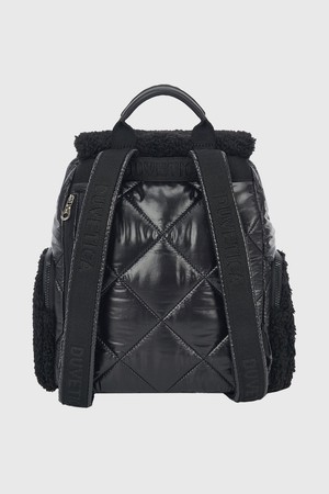 - 듀베티카 시그니처인 글로시한 패딩 소재와 플리스 소재를 사용한 여성 백팩