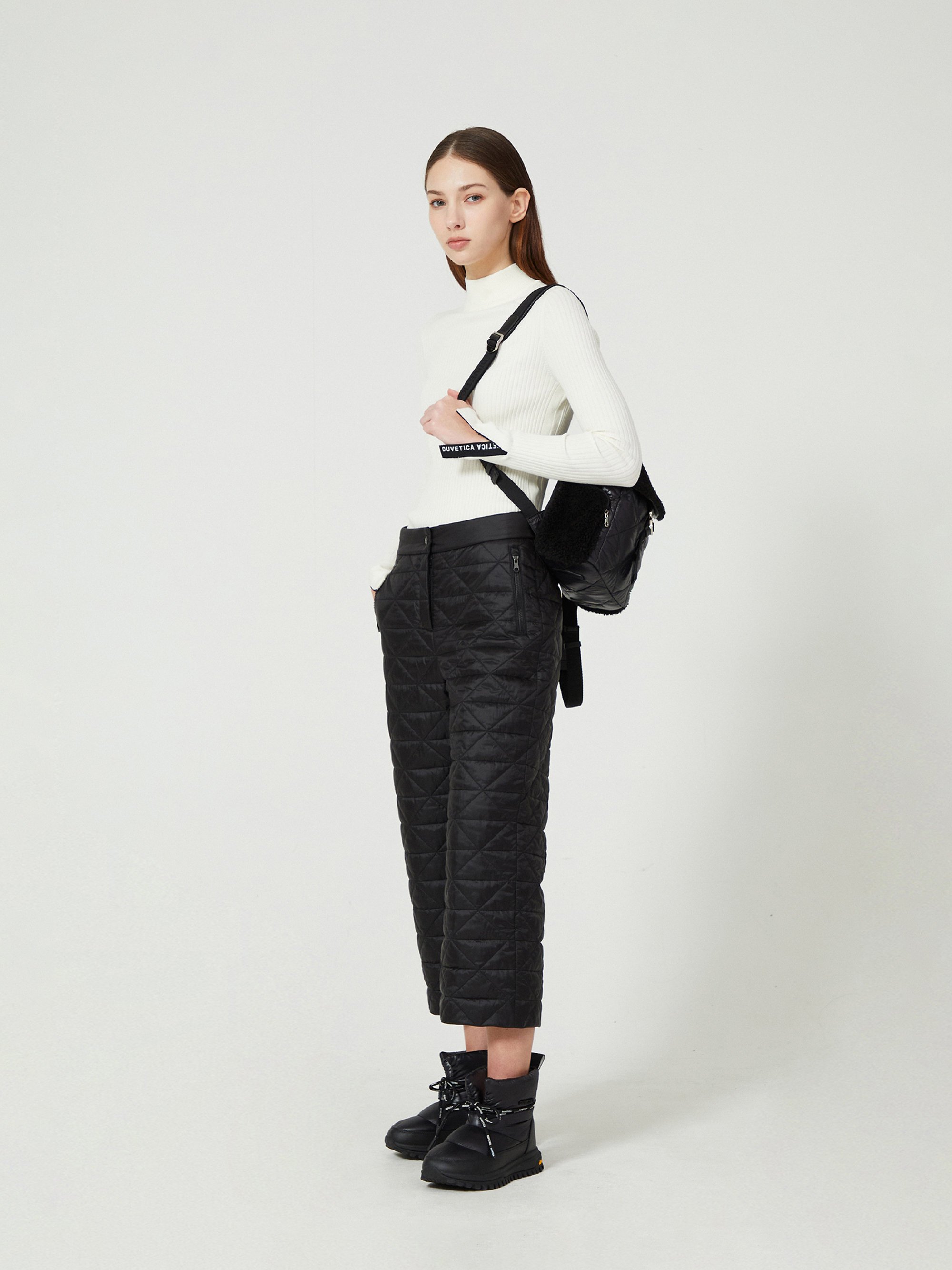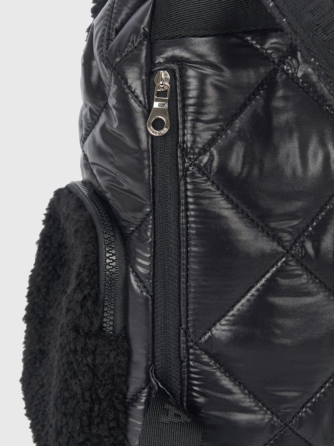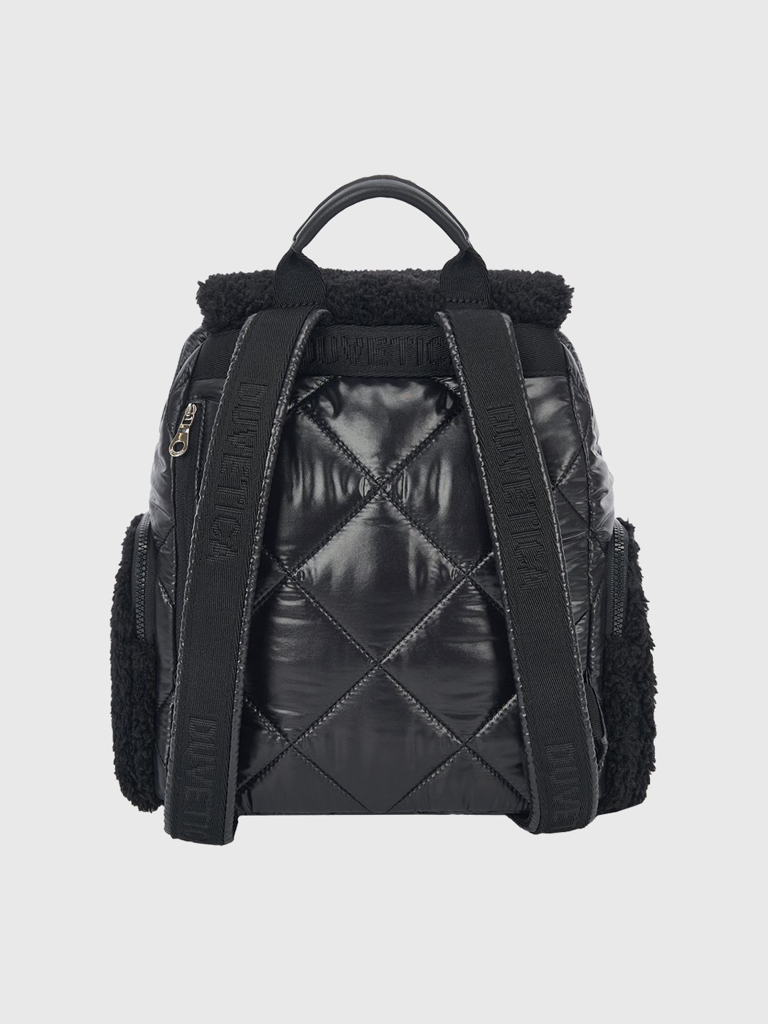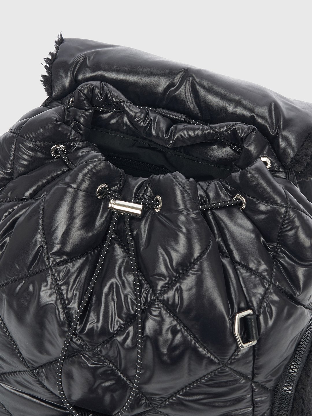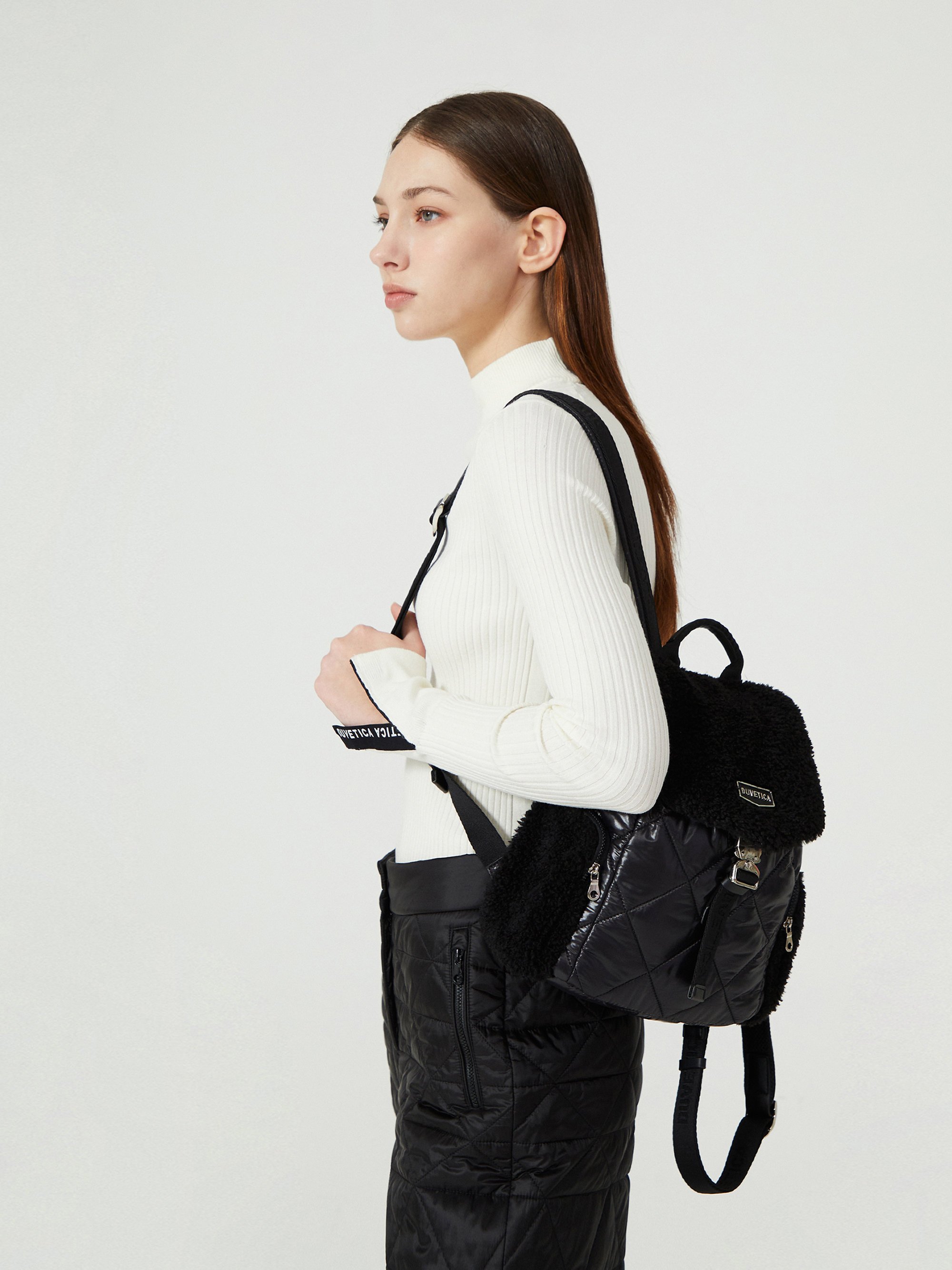 - 듀베티카 시그니처인 글로시한 패딩 소재와 플리스 소재를 사용한 여성 백팩