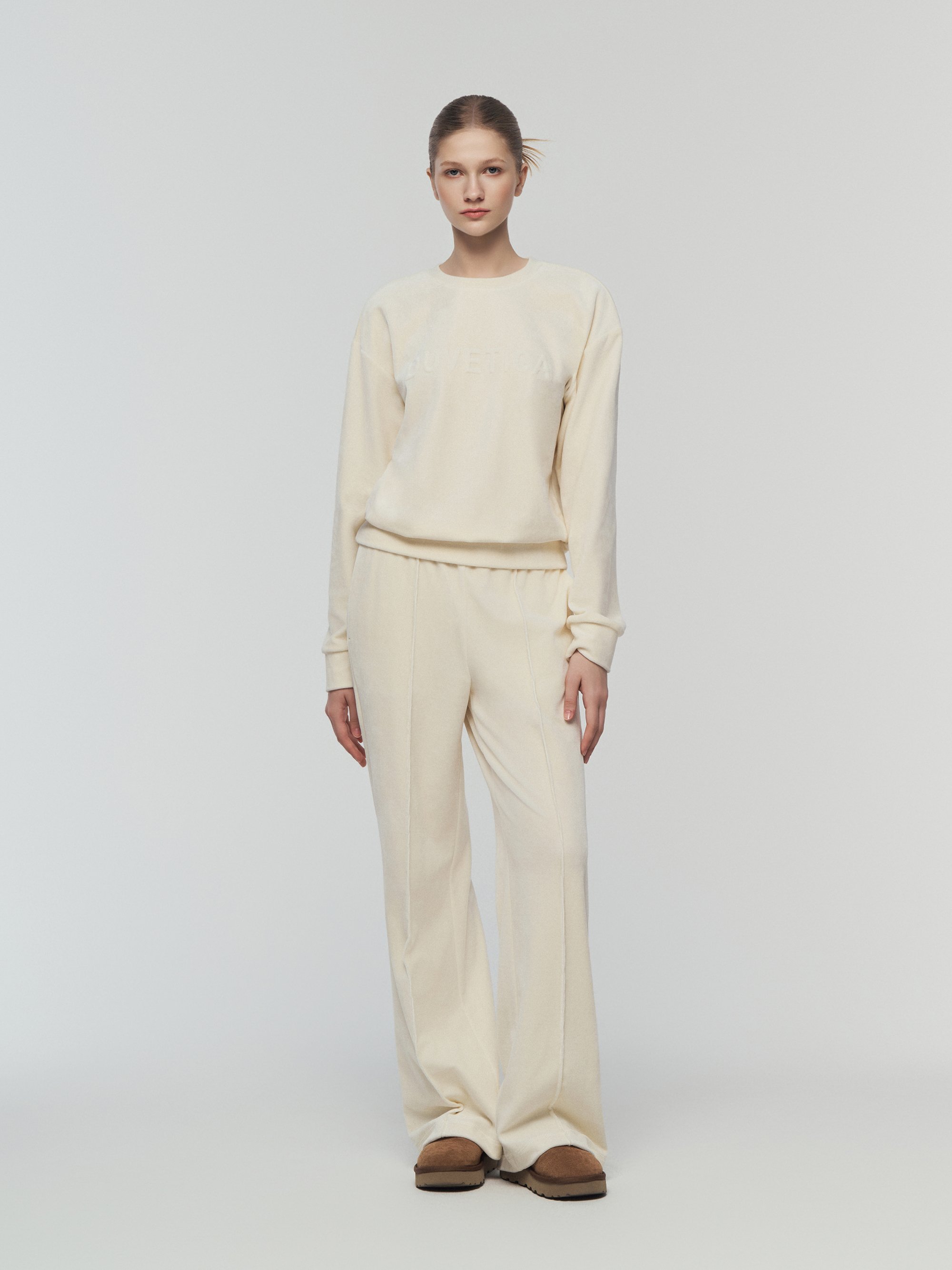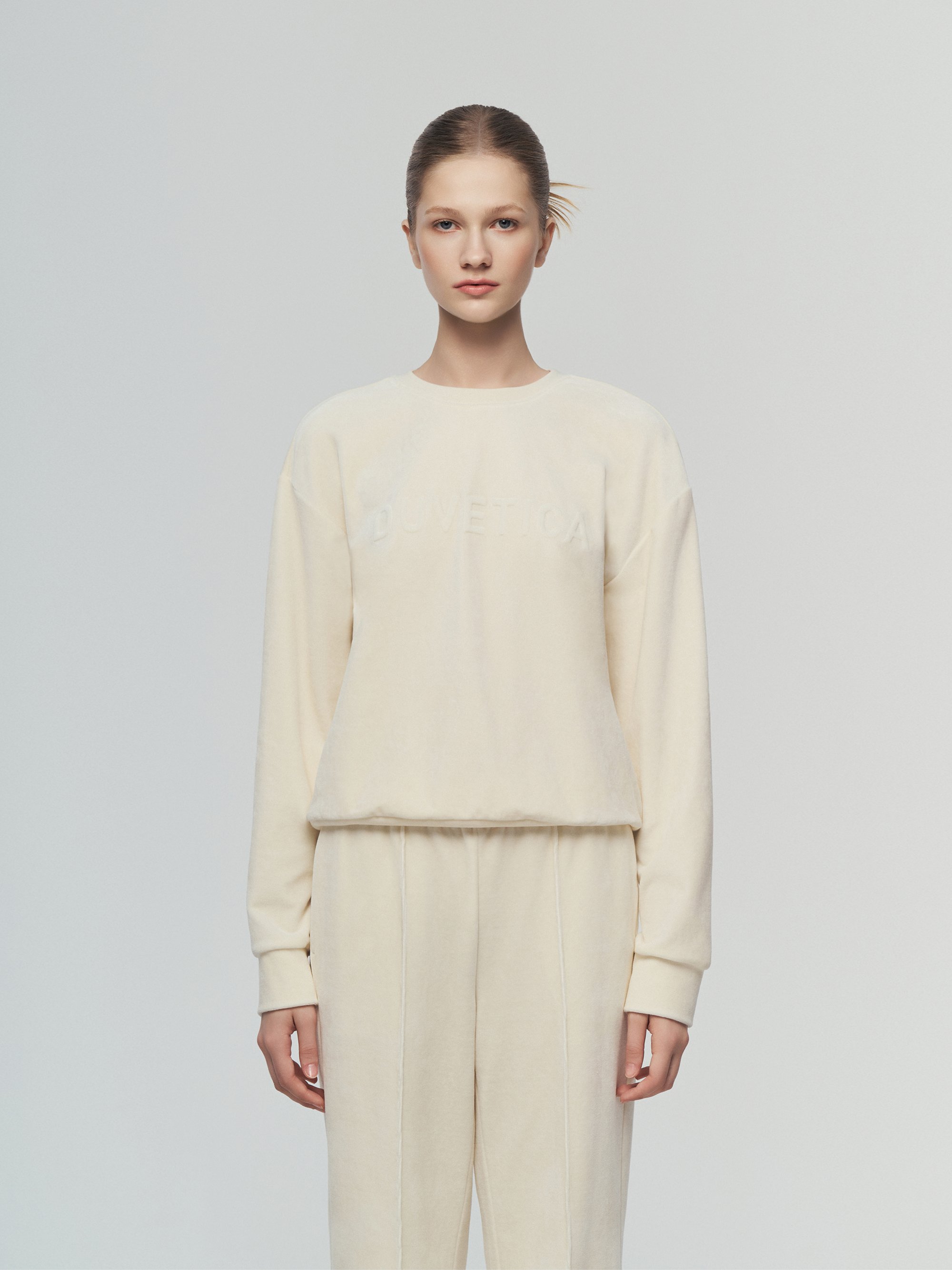 - 벨벳 저지 소재로 편안한 신축성과 부드러운 착용감