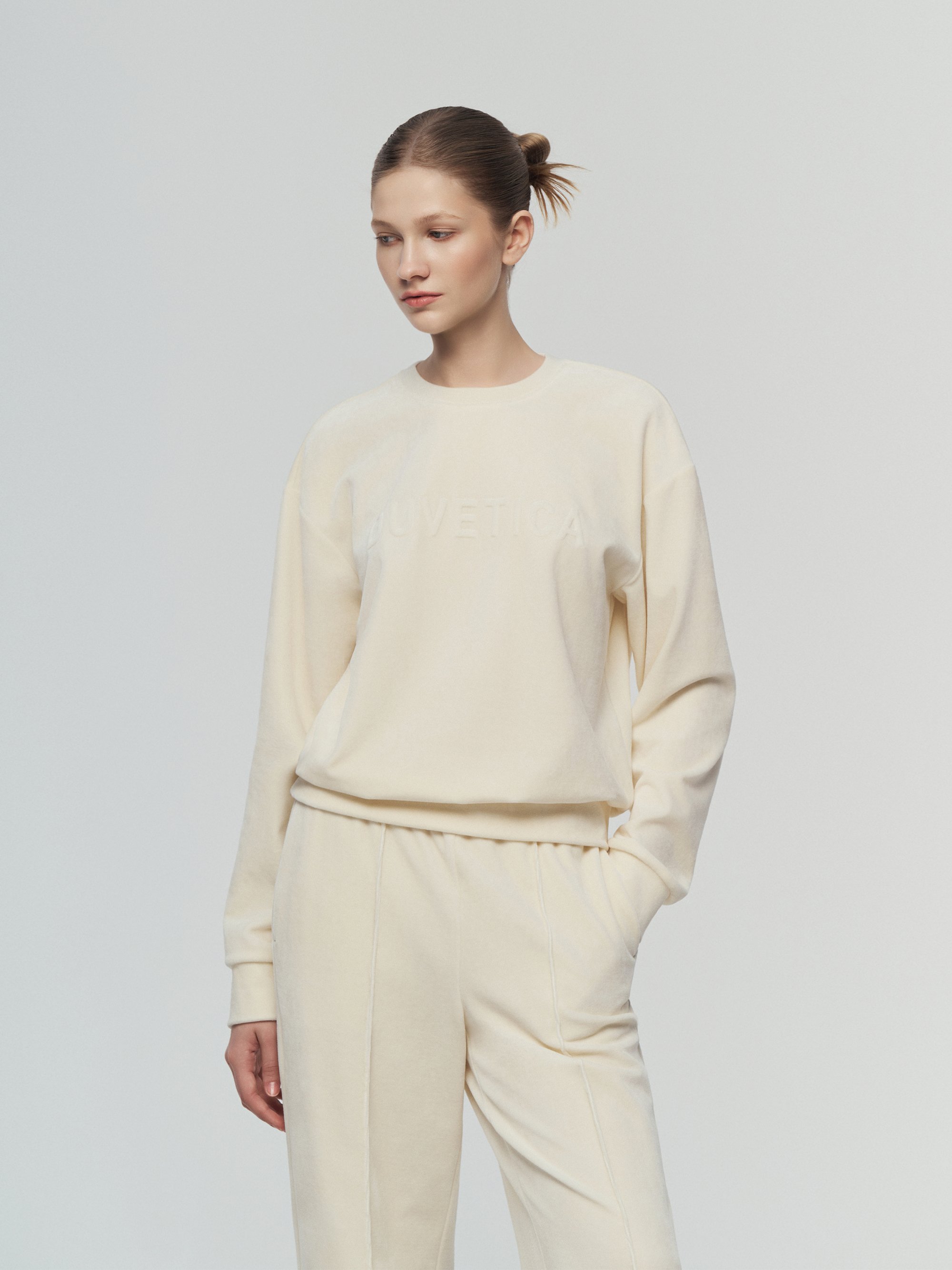 - FW 시즌 착용하기 용이한 벨벳 소재 맨투맨 상의