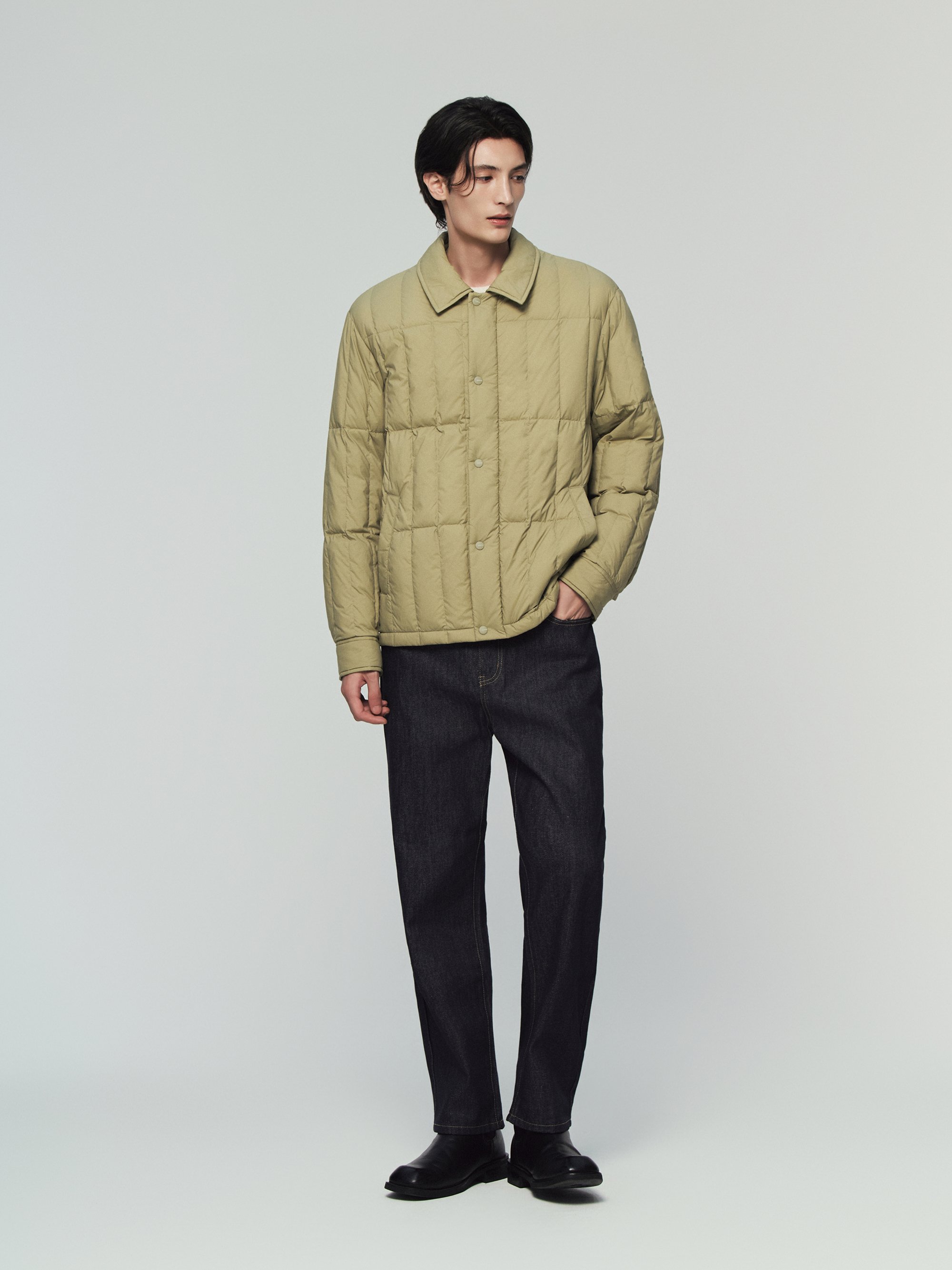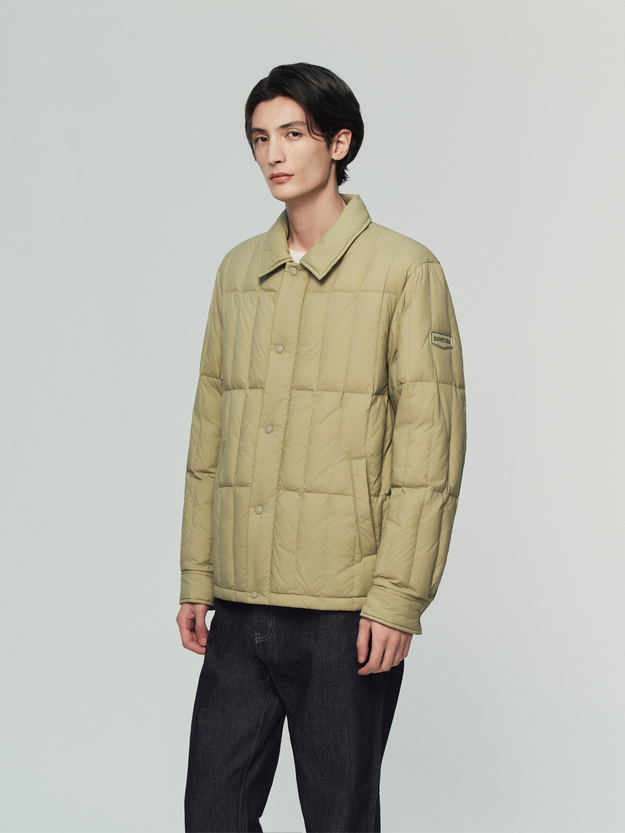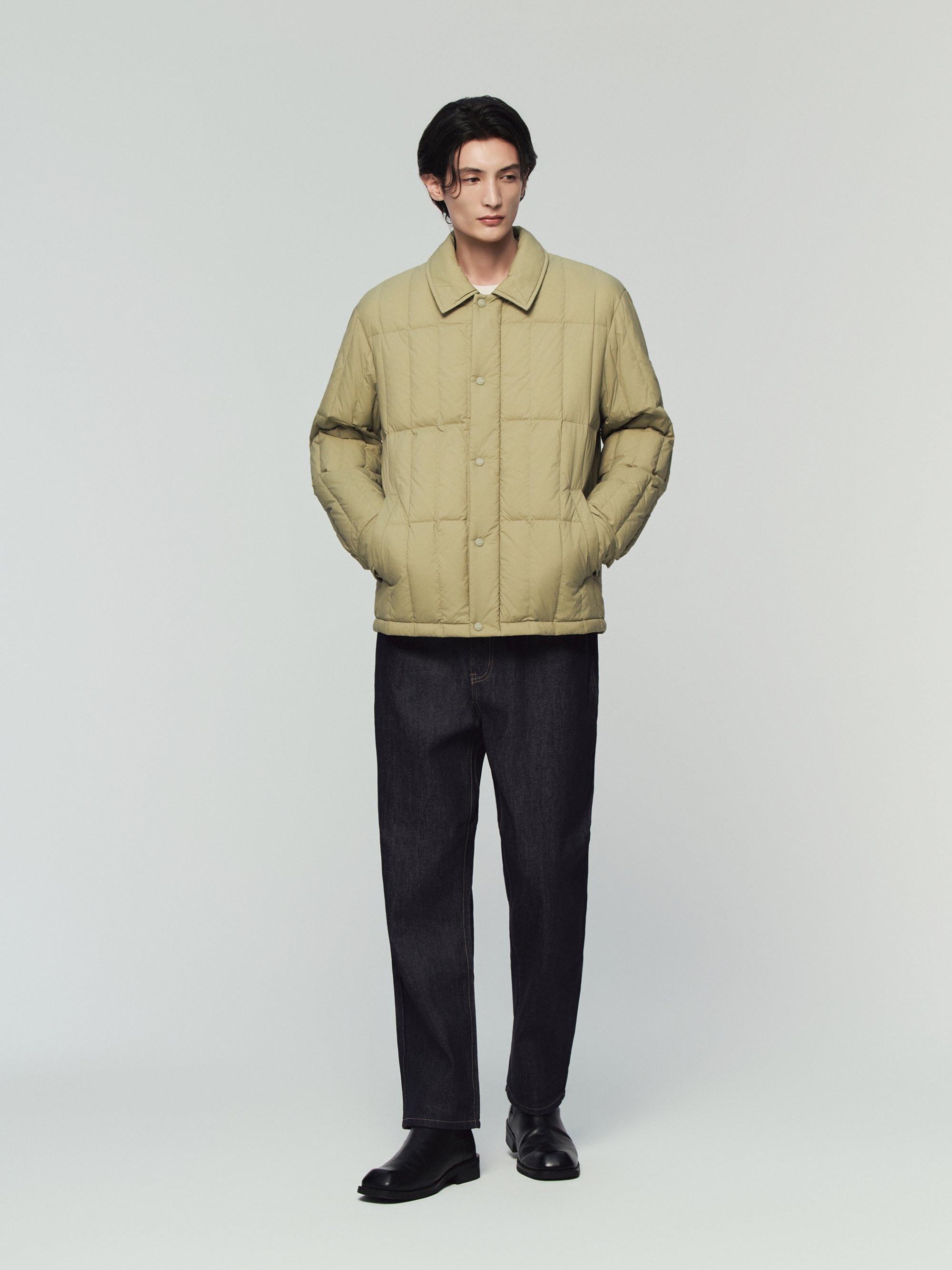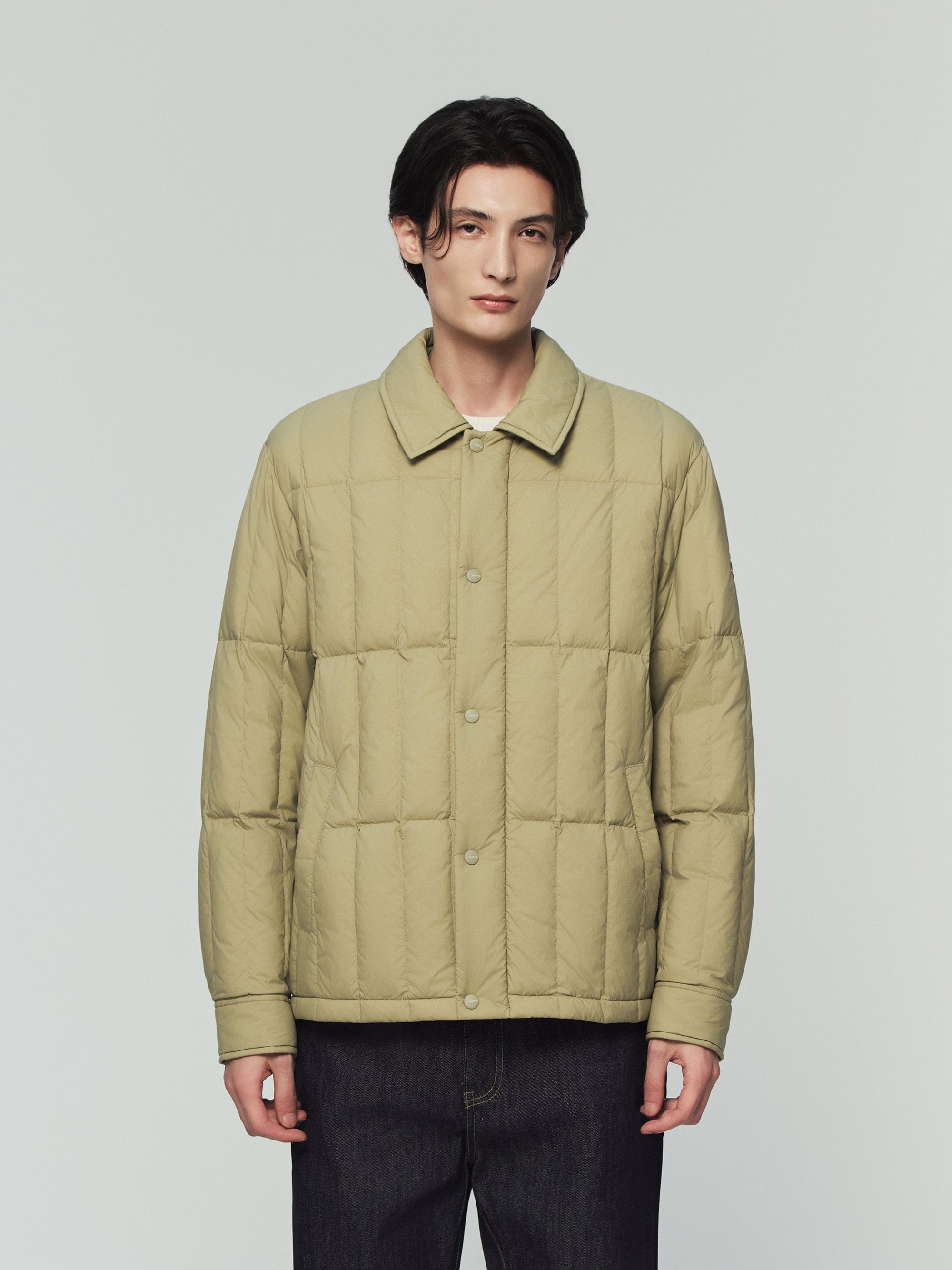 - 자연스러운 표면감이 특징인 나일론 소재를 사용한 남성 경량 다운자켓.
