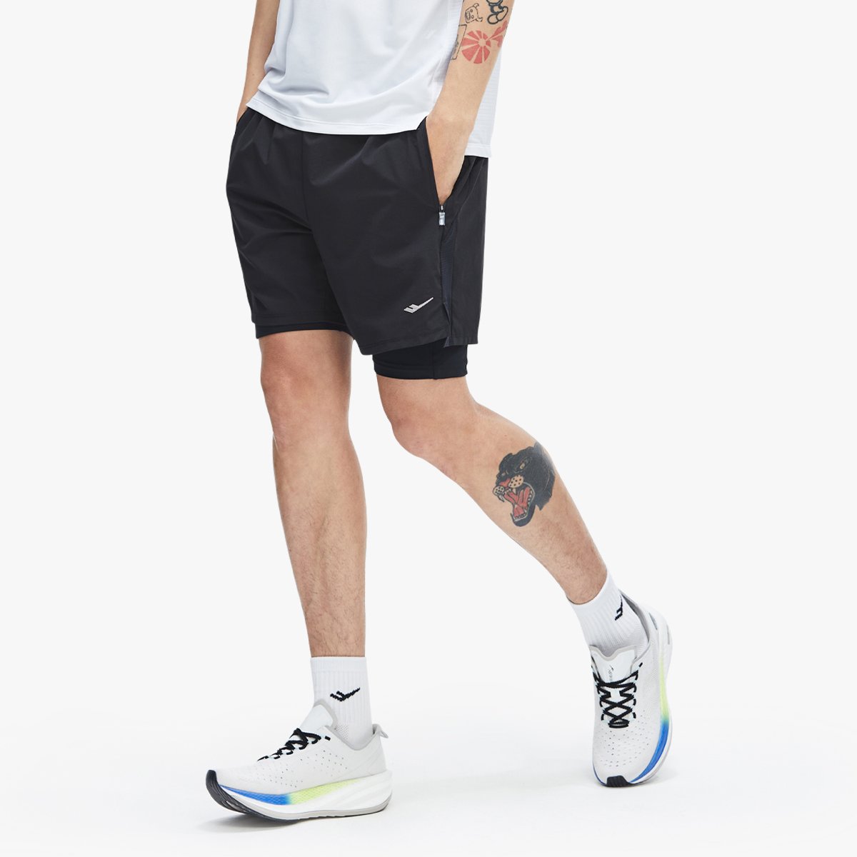| 소재 | 반바지용 겉감: 나일론90% 폴리우레탄10%, 배색1: 폴리에스터78% 폴리우레탄22%, 배색2: 폴리에스터90% 폴리우레탄10%, 배색3: 나일론85% 폴리우레탄15%, 주머니감:폴리에스터 100% / 레깅스용 겉감: 나일론74% 폴리우레탄26%구분 남 / HS제품소재 |