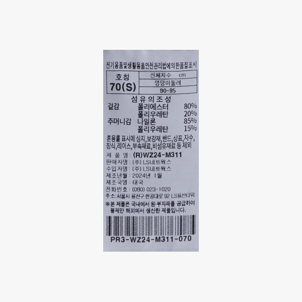| 소재 | 겉감: 폴리에스터80%,폴리우레탄20% 주머니감: 나일론85%,폴리우레탄15% |