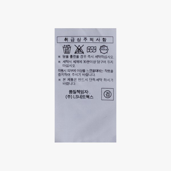 | 세탁방법 및 취급시 주의사항 | 제품 라벨(Label) 및 태그(Tag) 참조 |