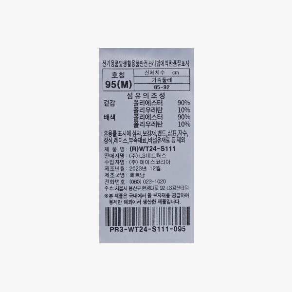 | 소재 | 겉감: 폴리에스터 90%, 폴리우레탄10% 배색: 폴리에스터 90%, 폴리우레탄10% |