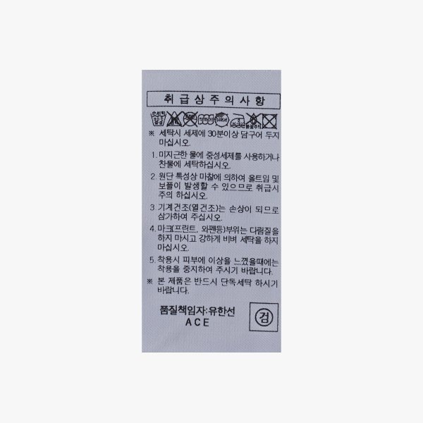 | 세탁방법 및 취급시 주의사항 | 제품 라벨(Label) 및 태그(Tag) 참조 |