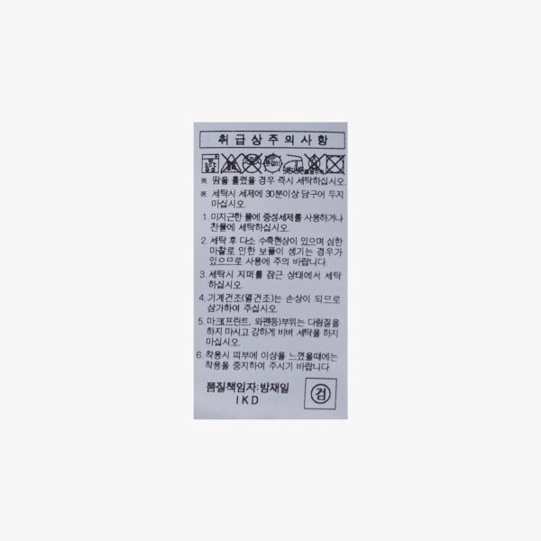 | 세탁방법 및 취급시 주의사항 | 제품 라벨(Label) 및 태그(Tag) 참조 |