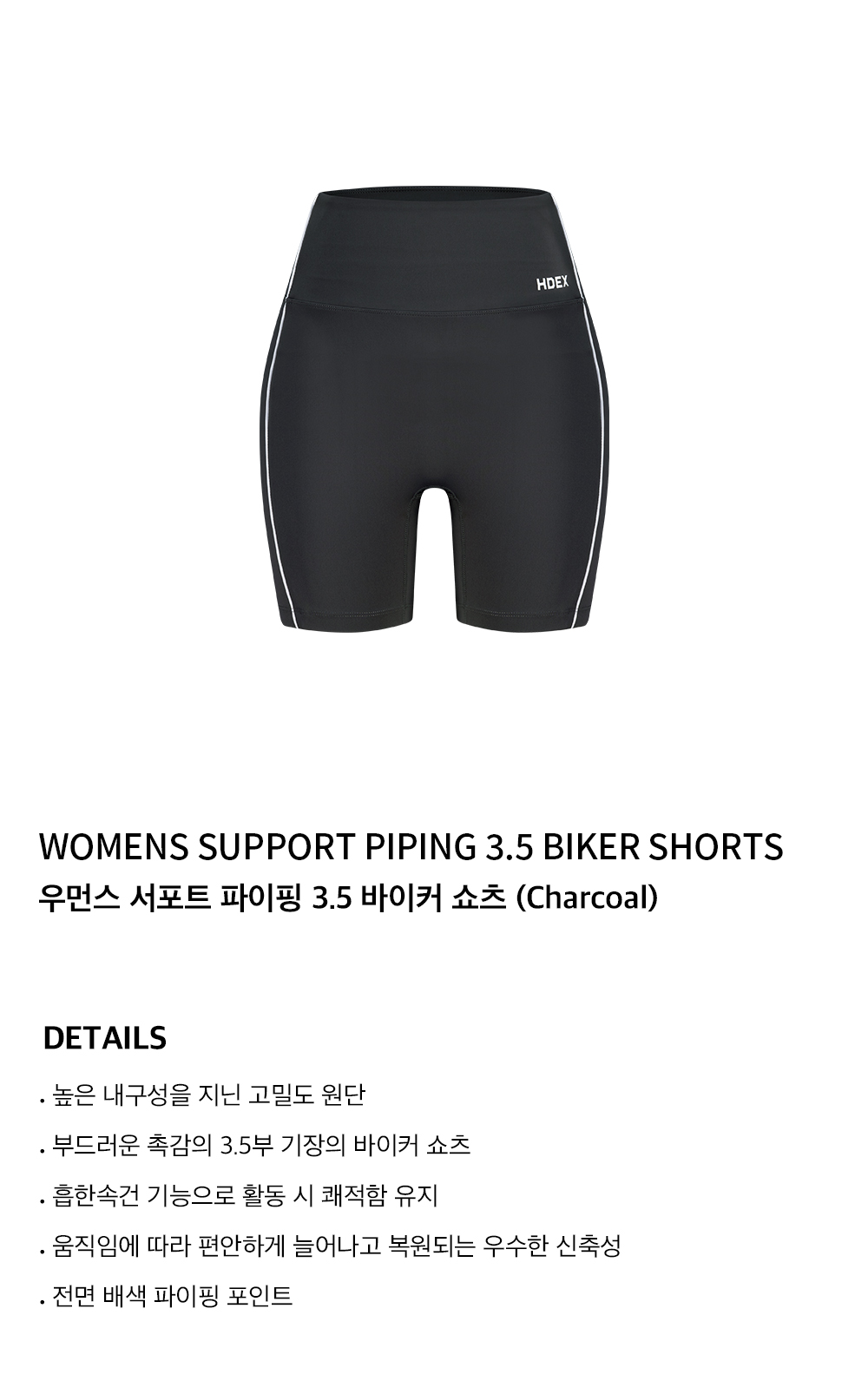 우먼스 서포트 파이핑 3.5 바이커 쇼츠 (Charcoal)