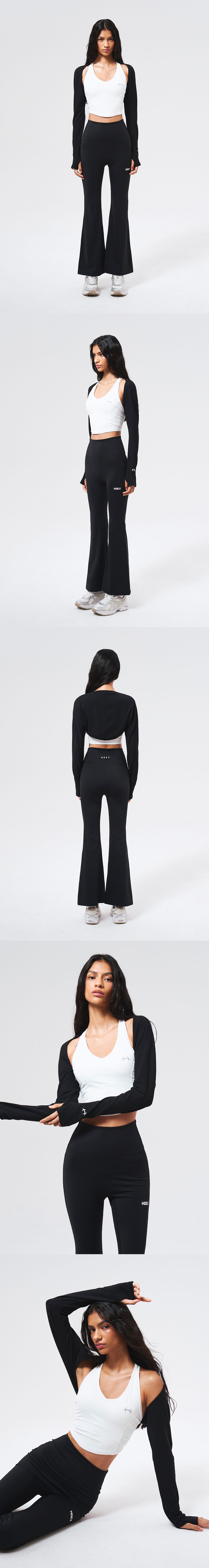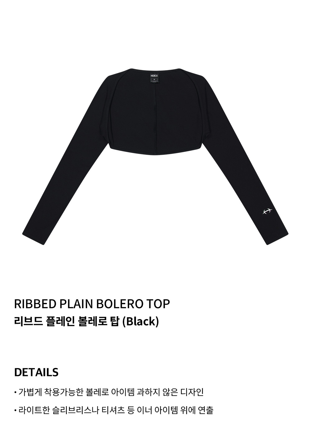 리브드 플레인 볼레로 탑 (Black)