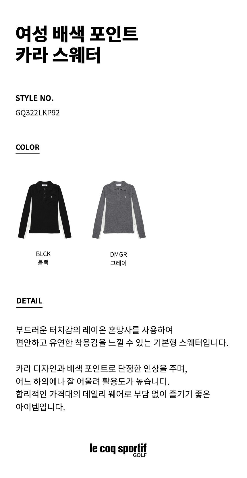 여성 배색 포인트 카라 스웨터 (GQ322LKP92)