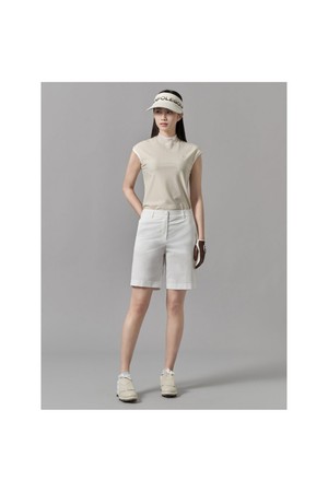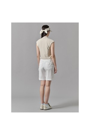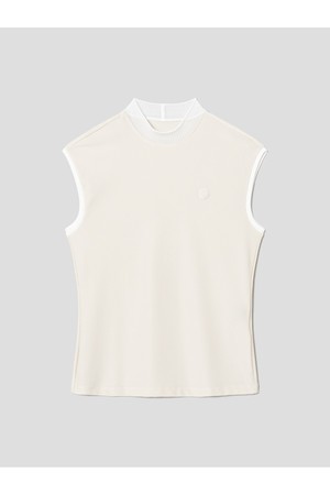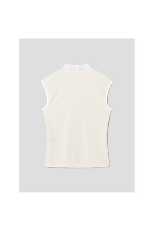 가볍고 시원한 하이넥 슬리브리스 티셔츠입니다. 잔잔한 골 조직이 들어간 나일론 혼방소재로 탄탄하면서 신축성이 좋으며, 넥에는 얇은 골조직의 니트를 달아주어 여성스러운 느낌을 더해줍니다. 어깨를 살짝 감싸는 소매 모양이 부담스럽지 않게 착장할 수 있도록 해줍니다.