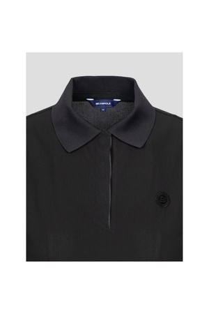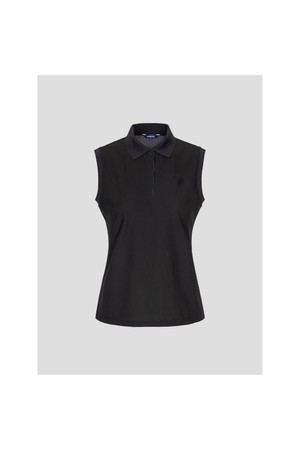 여성 피케 슬리브리스 티셔츠 - 블랙