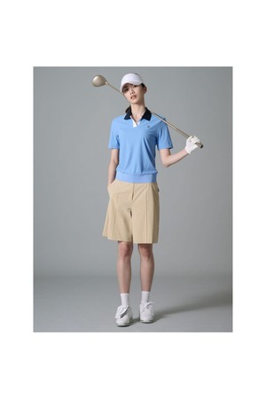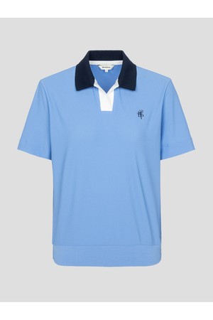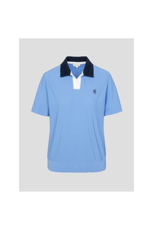 여성 오픈칼라 블루종핏 반소매 티셔츠 - 블루