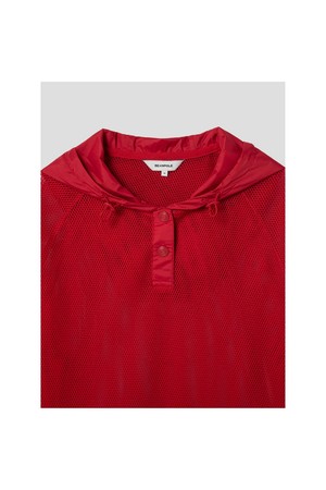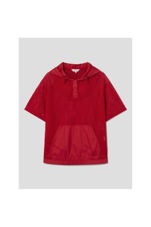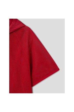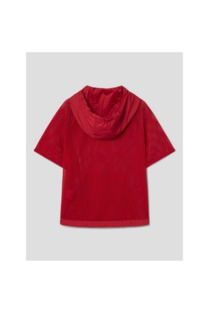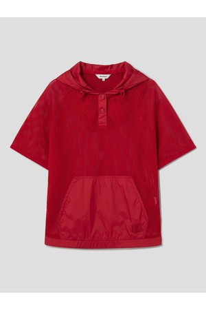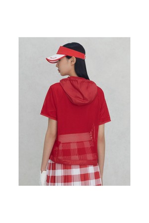 여성 경량 메쉬 후디 반소매 티셔츠 - 레드