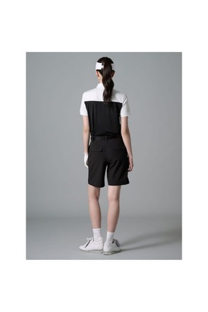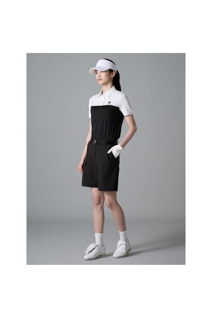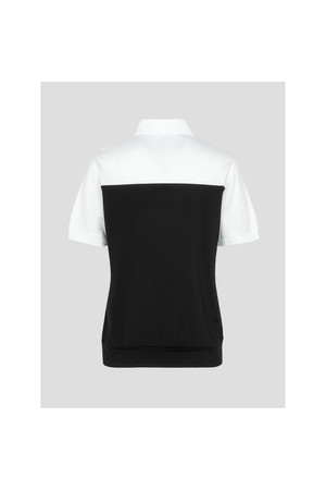 여성 컬러 배색 반팔 티셔츠 - 블랙