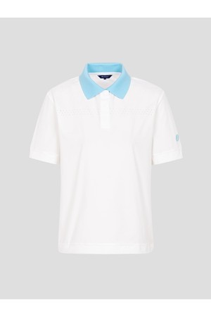 청량한 촉감이 포인트인 반소매 티셔츠입니다. 더운 여름 날씨에도 몸에 달라붙지 않는 소재로 시원함을 극대화했으며, 등판과 앞가슴 부분에 구멍을 뚫은 펀칭 디테일이 청량함을 더합니다. 앞여밈은 가볍고 내구성이 좋은 일본 선그립 단추를 사용하여 입고 벗기 편리하며 필드에서 활용도가 높은 아이템입니다.
