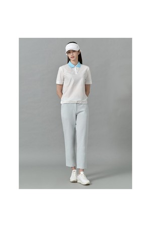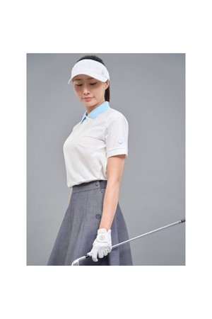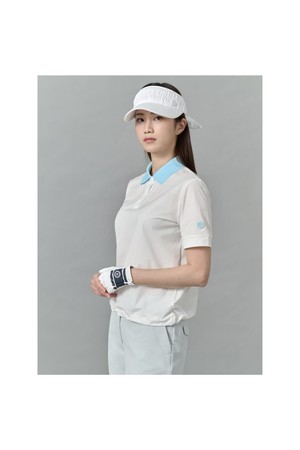 여성 우븐배색 블루종핏 반팔 티셔츠 - 아이보리