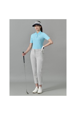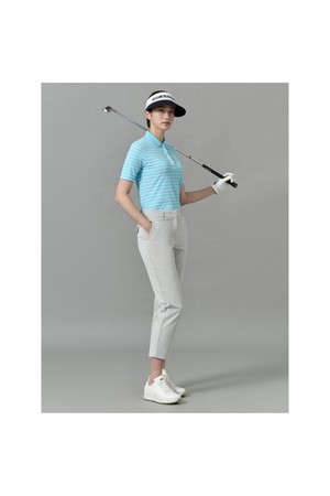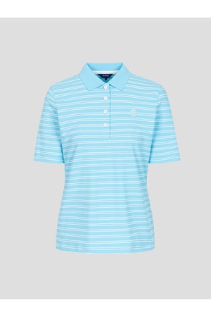 스트라이프 패턴 반팔 티셔츠입니다. 깔끔하면서도 세련된 패턴의 골조직 소재를 사용하여 클래식하면서도 스포티한 룩을 연출해 줍니다. 5부 소매 기장으로 골조직이 전체적인 실루엣을 슬림하게 잡아주어 일상과 필드에서 두루 활용이 가능한 아이템입니다.