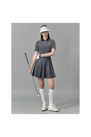 스트라이프 패턴 반팔 티셔츠입니다. 깔끔하면서도 세련된 패턴의 골조직 소재를 사용하여 클래식하면서도 스포티한 룩을 연출해 줍니다. 5부 소매 기장으로 골조직이 전체적인 실루엣을 슬림하게 잡아주어 일상과 필드에서 두루 활용이 가능한 아이템입니다.
