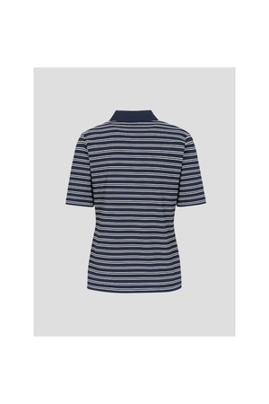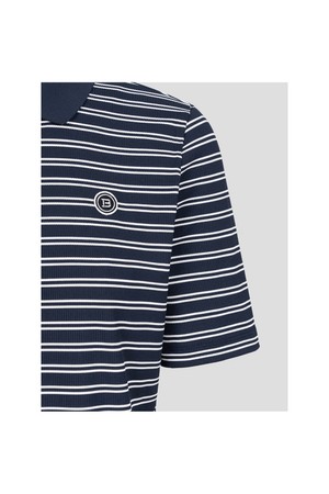 여성 스트라이프 반팔 티셔츠 - 네이비