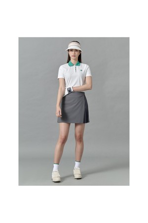 옆선 배색 디자인이 돋보이는 반소매 티셔츠입니다. 요철이 느껴지는 나일론 소재로, 칼라와 앞여밈 안쪽에 배색으로 포인트를 주었습니다. 옆선은 테이프를 사용해 주름을 잡아 캐주얼하면서도 날씬한 라인을 연출합니다. 단품이나 다양한 하의와 코디하기 용이한 아이템입니다.