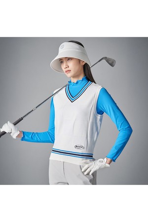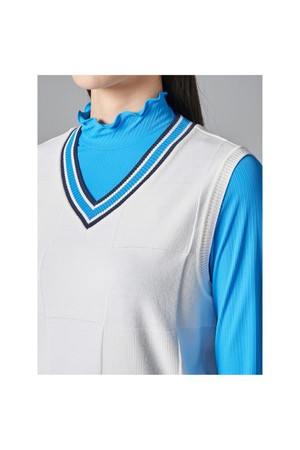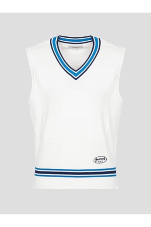 브이넥의 배색 디테일이 산뜻한 포인트를 주는 니트 베스트입니다. 은은한 바둑판 사각 무늬의 체크 조직이 고급스러운 무드를 선사합니다. 좌우 밑단에는 트임을 주어 활동성을 높였습니다. 가벼운 기능성 원사를 사용하여 착용감이 한층 편안합니다. 날씨에 따라 긴소매 티셔츠나 반소매 티셔츠와 함께 착용하여 멋스러운 스타일링을 연출할 수 있습니다.