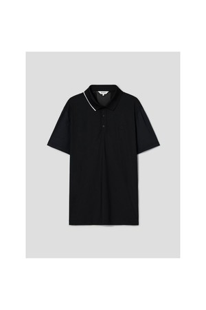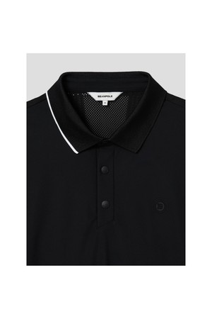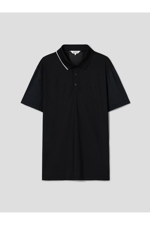 남성 메쉬 자카드 믹스 반소매 칼라 티셔츠 - 블랙