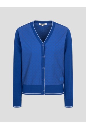 은은한 로고 패턴과 청량한 색상이 돋보이는 카디건입니다. 몸에 붙지 않는 여유로운 핏과 시원한 원사를 사용하여 뜨거운 햇살 아래서도 쾌적하게 착용할 수 있습니다. 신축성이 좋고 탄탄한 느낌의 원단으로 라운딩 시 움직임이 편안하며, 클래식한 디자인으로 다양하게 활용하기 좋습니다.