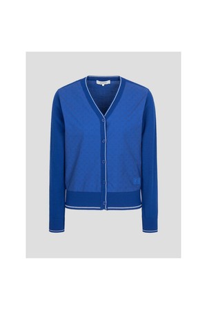 여성 우븐믹스 브이넥 카디건 - 블루