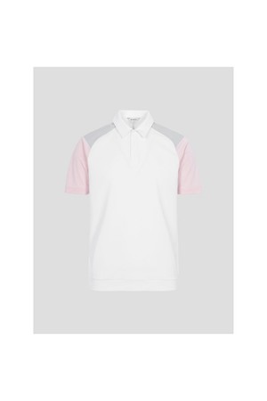 남성 칼라 배색 하이브리드 티셔츠 - 화이트