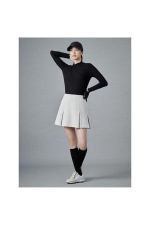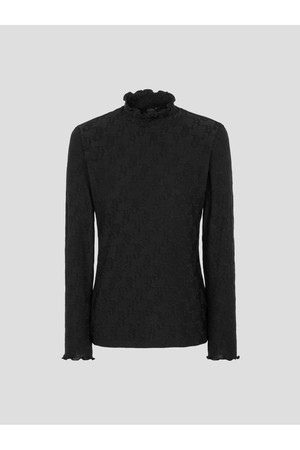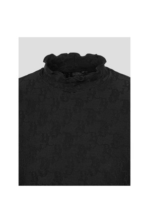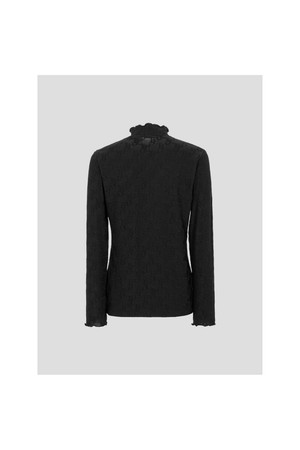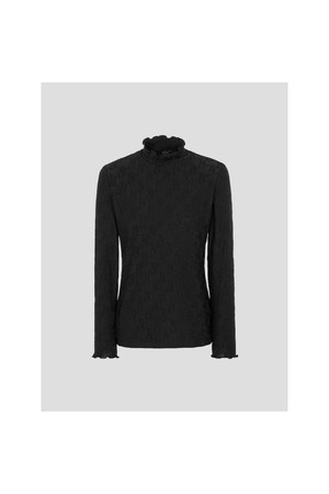 [Essential] 여성 자카드 하이넥 티셔츠 - 블랙