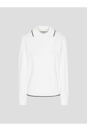 가볍고 청량한 소재의 긴소매 니트 풀오버입니다. 칼라 넥 디자인으로 단독으로 입었을 때에도 레이어드 룩을 입은 것 같은 스타일을 연출해 줍니다. 편안하게 입을 수 있는 레귤러 핏으로 칼라와 밑단에 배색을 주어 은은하면서도 포인트가 되는 아이템입니다.