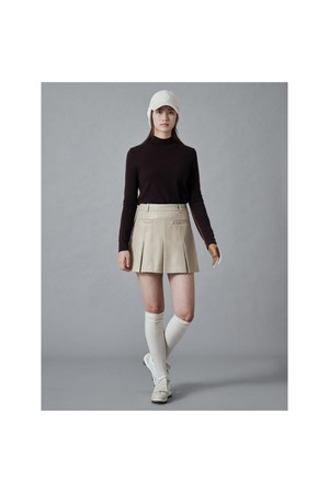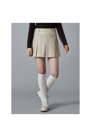 부드러운 페이크 레더로 트렌디한 무드를 느낄 수 있는 플리츠스커트입니다. 앞 포켓에 금속 스냅을 사용하여 상의를 넣어 입었을 때에도 돋보이는 스타일을 연출할 수 있습니다. 가을, 겨울 어떤 상의와 매치해도 멋스러운 아이템입니다.