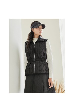 여성 커브 퀼팅 패딩 베스트 - 블랙