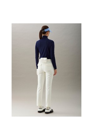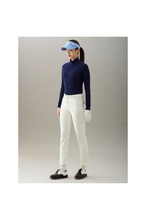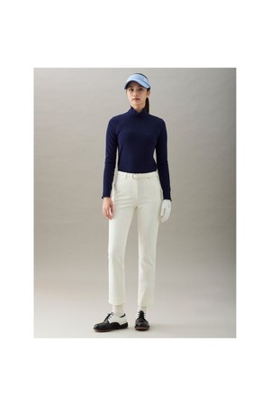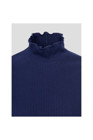 [Essential] 여성 립조직 하이넥 티셔츠 - 네이비
