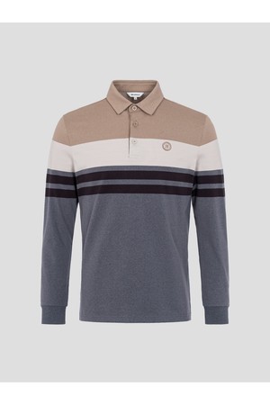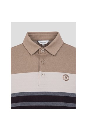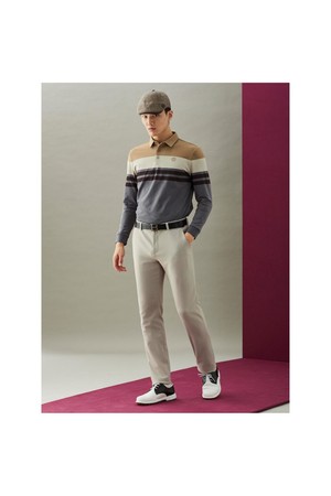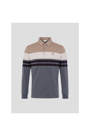 남성 선염 컬러블럭 칼라 티셔츠 - 베이지