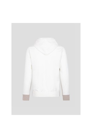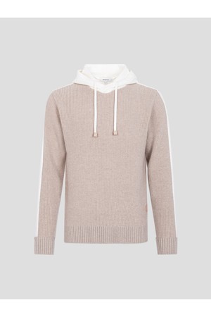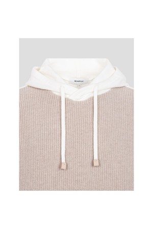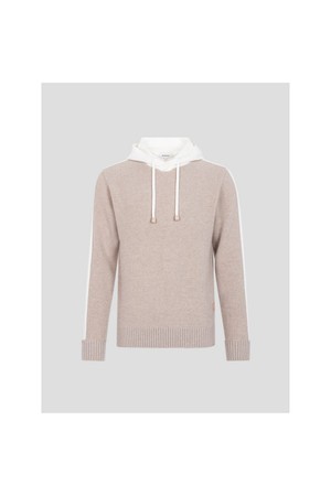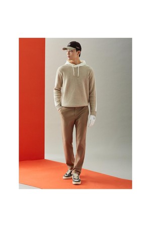고급스러운 베이지톤의 남성 후드 니트 풀오버입니다. 앞몸판은 미세한 조직감으로 부드러움이 뛰어난 원사를 사용하였으며, 뒷몸판은 보온성이 뛰어난 울혼방 원사를 사용하여 고급스러운 연출이 가능한 아이템입니다.