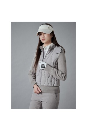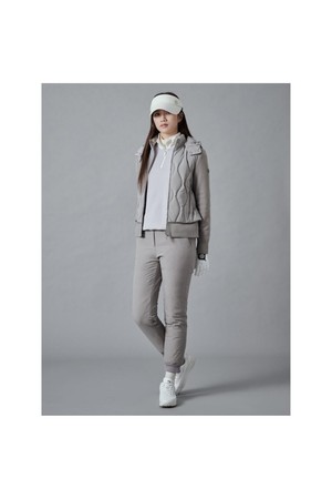 여성 물결 튜브 니트 하이브리드 다운점퍼 - 그레이