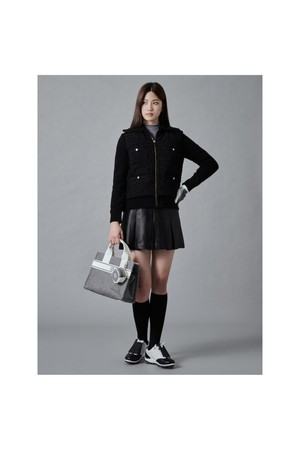 트위드 소재에 니트 소매가 패치된 하이브리드 패딩 점퍼입니다. 고급스러운 트위드 소재에 테이프 장식을 넣은 디자인이 돋보입니다. 트위드재킷 무드를 연출하면서도, 편안한 니트 소매로 활동성을 높여 착용감이 편안합니다.
