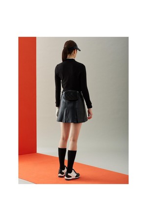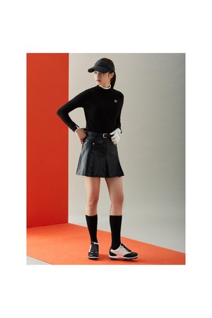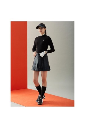 여성 더블 하이넥 긴팔 티셔츠 - 블랙