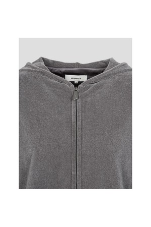 벨벳 느낌이 나는 후드집업 방풍 스웨터입니다. 가볍고 보온성이 좋은 폴리 원사에 방풍 안감을 더해 실용적입니다. 날씨에 따라 아우터나 이너로 활용할 수 있습니다. 옆선에 골조직과 소매 배색이 돋보이고, 기본 컬러로 레이어드하기 좋은 아이템입니다.