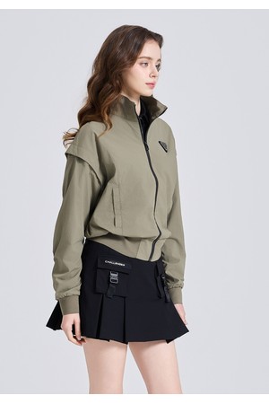 여성 드랍숄더 하이넥 소매 탈부착 블루종 자켓 카키베이지