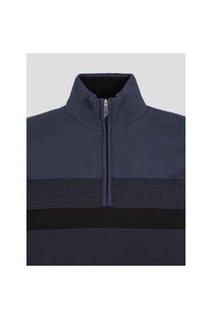 은은한 컬러 배색이 돋보이는 반집업 하이넥 풀오버입니다. 컬러 배색에 다양한 조직감이 더해져 고급스럽습니다. 방풍 안감이 있어 추운 날씨에도 바람을 잘 막아줍니다.
