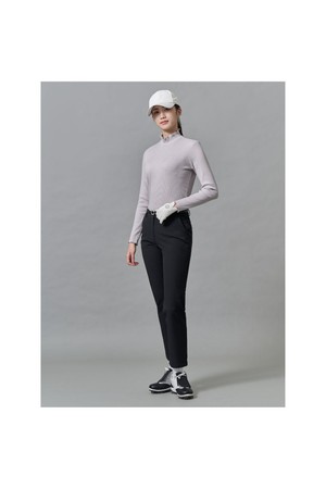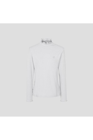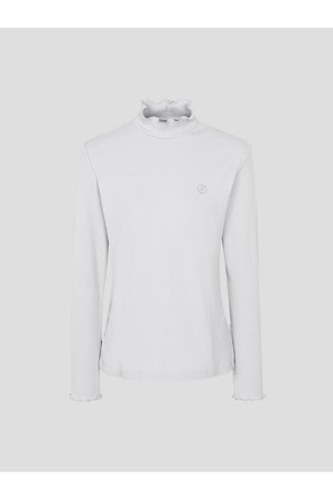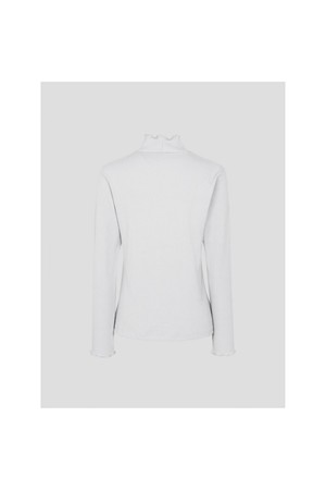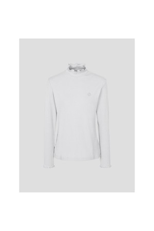 골지 조직 소재의 하이넥 티셔츠입니다. 외관을 스웨터처럼 보이게 하는 은은한 기모가 포인트입니다. 넥라인과 소매, 밑단의 잔잔한 주름은 여성스러운 분위기를 완성합니다. 기본 디자인으로 스웨터나 아우터와 코디하기 좋은 필수 아이템입니다.