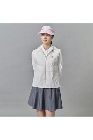 여성 봄 경량 후드 베스트 - 화이트