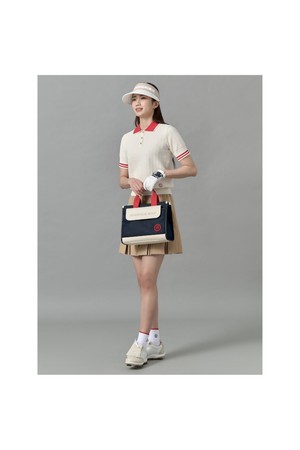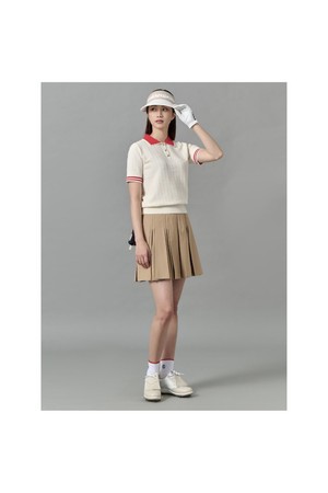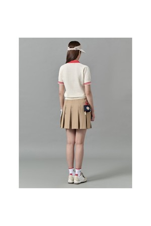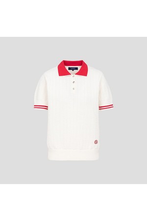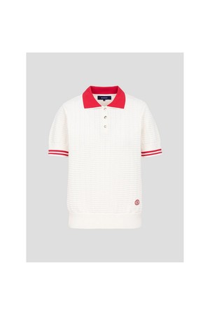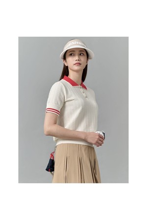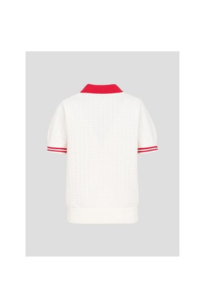 여성 자카드 니트 반팔 풀오버 - 화이트