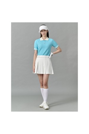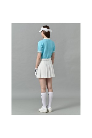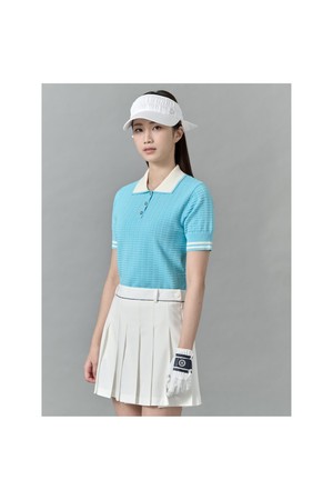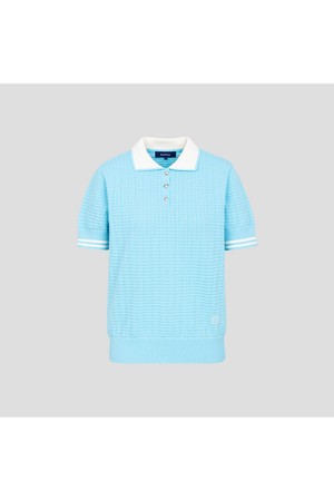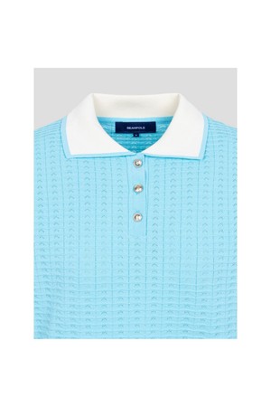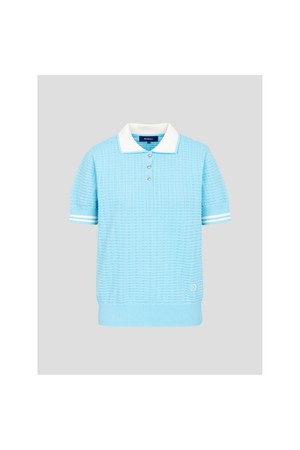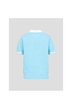 여성 자카드 니트 반팔 풀오버 - 스카이 블루