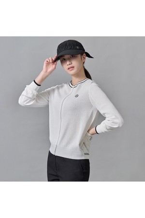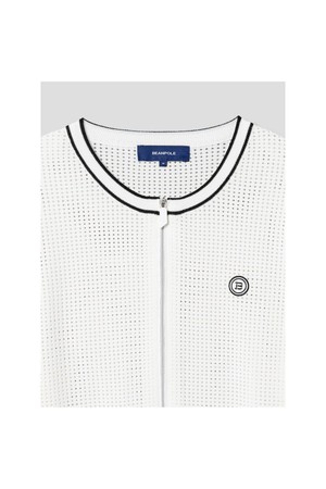 구멍이 성글게 엮인 스카시 조직이 포인트인 니트 집업 카디건입니다. 신축성이 좋은 레이온 혼방 원사를 사용해 탄탄하면서 청량한 느낌을 더했습니다. 두 가지 크기의 구멍을 연출한 조직이 어우러져 색다른 매력을 선사하는 아이템입니다.